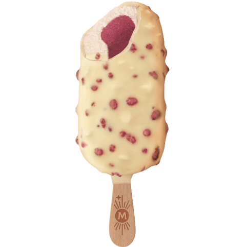 Gerehydrateerde magere MELK, suiker, cacaoboter¹, water, glucosestroop, frambozenpuree (5,5%), magere MELKPOEDER, citroensap op basis van geconcentreerd sap (4%), kokosolie, frambozensap op basis van geconcentreerd sap (3,5%), BOTERCONCENTRAAT, fructose, volle MELKPOEDER, LACTOSE en MELKEIWITTEN, glucose-fructosestroop, emulgatoren (E471, lecithines), geconcentreerd rode bietensap, stabilisatoren (johannesbroodpitmeel, taragom, guargom, carrageen), aroma’s, kleurstof (anthocyaninen), zuurteregelaar (citroenzuur), erwteneiwit, LACTOSE, koolstofdioxide (E290). Kan amandel, pistachenoot en tarwe bevatten. ¹Rainforest Alliance gecertificeerd.